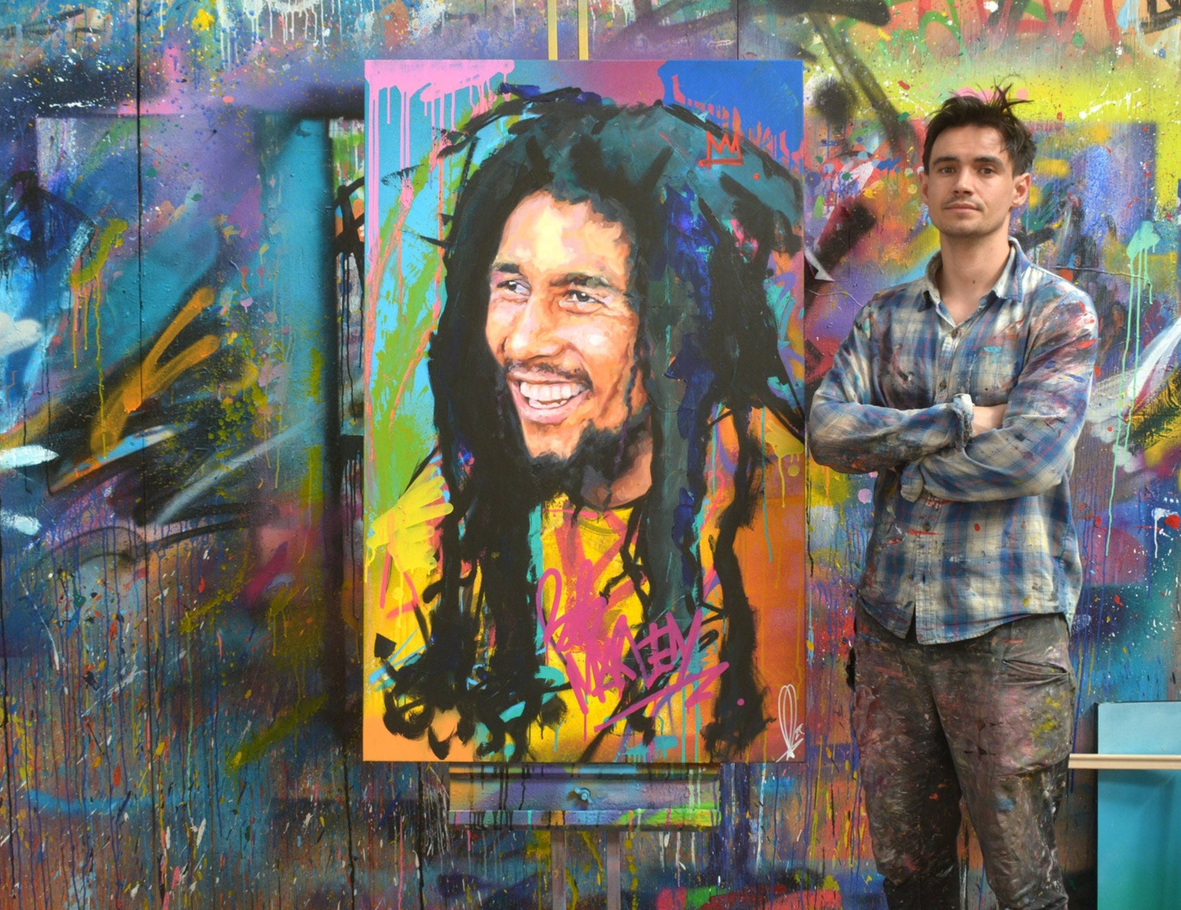 From my studio in Norwich, UK, I create artworks that blend my love for traditional portraiture with the energy of graffiti. By fusing these two styles, I aim to create one-of-a-kind pieces that offer a new perspective on familiar subjects.